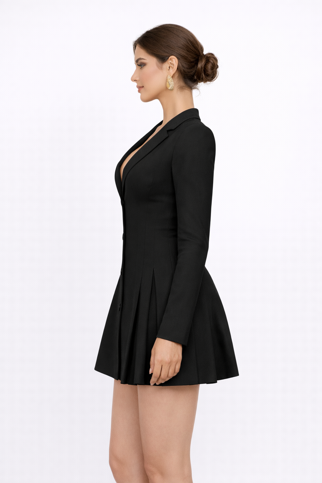 A sharp and feminine mini dress inspired by tailored silhouettes. Perfect for elevated daywear or polished evening styling.